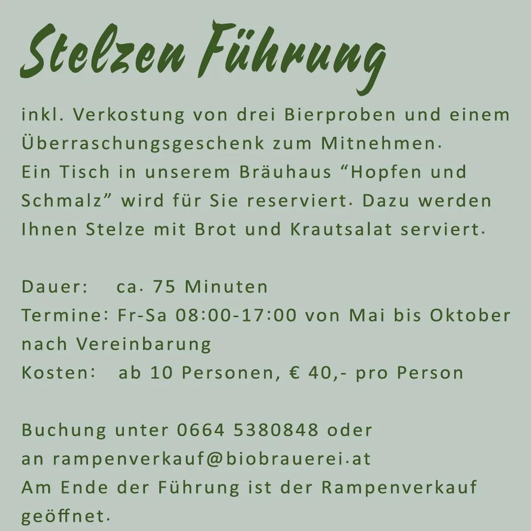 Buchung direkt über den Warenkorb oder unter 0664 5380848 oder an rampenverkauf@biobrauerei.at